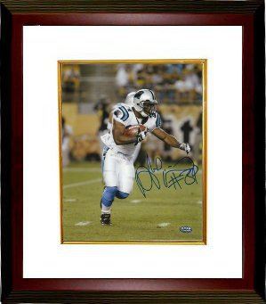 On April 29, 2006, Deangelo Williams was selected by the Carolina Panthers with the 27th overall pick in the NFL Draft. In 2008, Williams set a franchise record for rushing touchdowns in one game by scoring four touchdowns in a week 13 game against the Green Bay Packers. In week 15 of the 2008 season, Williams was selected FedEx Ground Player-of-the-Week after a dominating performance in which he rushed for 186 yards on 19 carries and 2 touchdowns vs. Tampa Bay Buccaneers on Monday Night Football. During the 2010 Pro Bowl, DeAngelo Williams scored a touchdown on a 7 yard run, the first by a Panthers player in team history. Deangelo Williams has hand autographed this Carolina Panthers 16X20 Photo. Custom White Mat and Premium Mahogany Frame as shown. Williams hologram and Certificate of Authenticity from Athlon Sports.