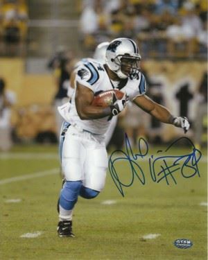 On April 29, 2006, Deangelo Williams was selected by the Carolina Panthers with the 27th overall pick in the NFL Draft. In 2008, Williams set a franchise record for rushing touchdowns in one game by scoring four touchdowns in a week 13 game against the Green Bay Packers. In week 15 of the 2008 season, Williams was selected FedEx Ground Player-of-the-Week after a dominating performance in which he rushed for 186 yards on 19 carries and 2 touchdowns vs. Tampa Bay Buccaneers on Monday Night Football. During the 2010 Pro Bowl, DeAngelo Williams scored a touchdown on a 7 yard run, the first by a Panthers player in team history. Deangelo Williams has hand autographed this Carolina Panthers 16x20 Photo. GTSM Hologram and Certificate of Authenticity from Athlon Sports.