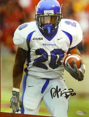 Deangelo Williams holds the NCAA records for most career all-purpose yards (7,573) and 100-yard rushing games (34). He also ranks fourth on the all-time NCAA rushing list with 6,026 yards, trailing only Ron Dayne, Ricky Williams, and Tony Dorsett. Williams was on the 2004 Pro Football Weekly All-America Team. Deangelo Williams has hand autographed this Memphis Tigers 8x10 Photo. GTSM hologram and Certificate of Authenticity from Athlon Sports.