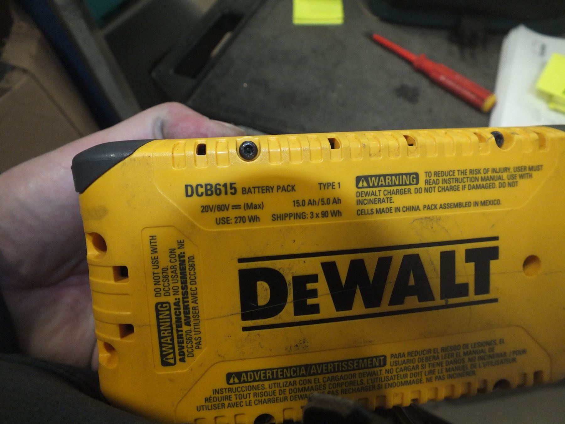 Deawlt 15 AH 20v-60v Flex Volt Battery, lightly used...