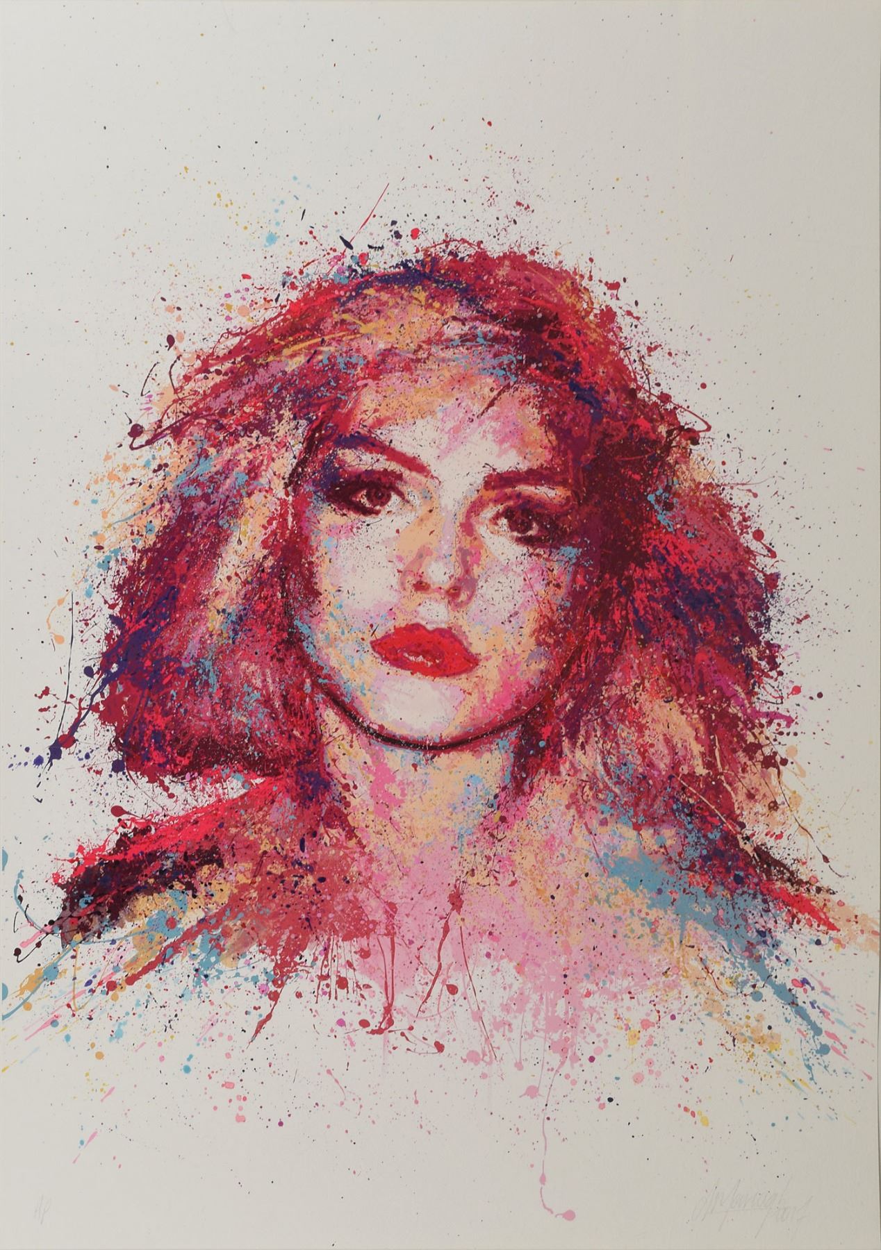 Impressive color limited edition 23.25 x 33 hand-finished artist's proof giclee print by Daniel Mernagh portraying Blondie's Debbie Harry, numbered "AP," signed in the lower right in pencil by the artist, "D. Mernagh, 2017." The colorful artwork, accomplished in Mernagh's distinctive drip-splash style, depicts the new wave singer in a front-facing view. The print is executed on Hahnemuhle German Etching fine art paper. In fine condition. A London-based contemporary artist, Daniel Mernagh casts celebrities and icons in a bold, bright, and unique style of work; in 2015, he curated his first show at London's Fabric nightclub.