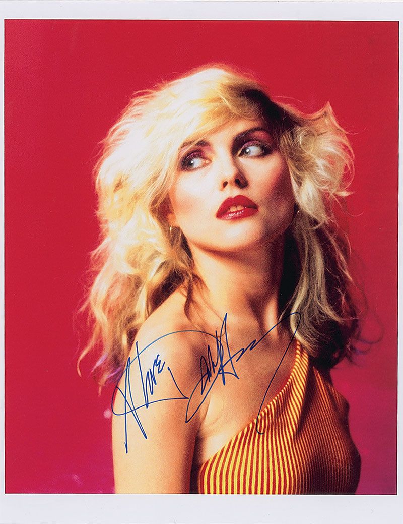 Color satin-finish 11 x 14 photo, signed in blue felt tip, “Love, Debbie Harry.” In fine condition. Accompanied by a certificate of authenticity from JSA.