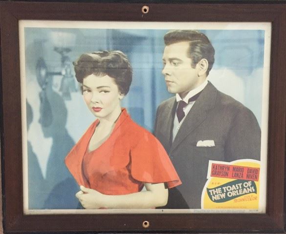 The Lion in Winter movie still, The Toast of New Orleans (50/578), The Bridge on the River Kwai (1958) and Two Years Before the Mast (1956) vintage, mini movie posters collection. These frames once hung on the Debbie Reynolds Dance Studio walls (frame approx. 12"x16").