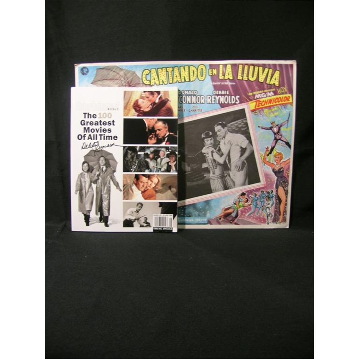 Entertainment Weekly special issue covering the 100 Greatest Movies of All Time with a cover image depicting a scene from Singin' in the Rain, signed by Debbie Reynolds in black felt pen. This lot further includes an original, full color Mexican lobbycard for Singin' in the Rain.