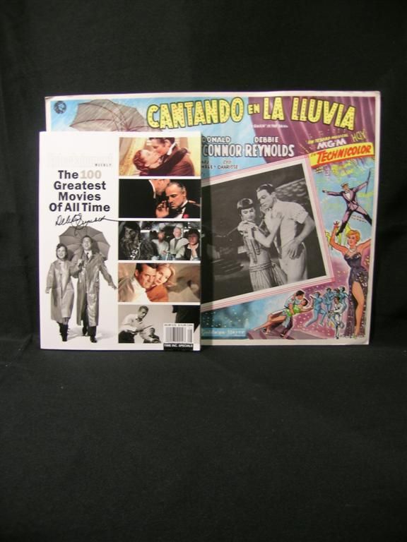 Entertainment Weekly special issue covering the 100 Greatest Movies of All Time with a cover image depicting a scene from Singin' in the Rain, signed by Debbie Reynolds in black felt pen. This lot further includes an original, full color Mexican lobby card for Singin' in the Rain.