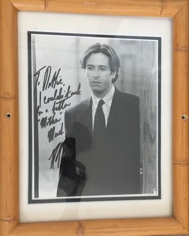 Collection of framed photos/signatures. Includes an autographed photo of The Lennon Sisters, a behind the scenes printed photo of Debbie Reynolds in the recording studio, an autographed headshot from Rob Morrow , Debbie Reynolds' son in the film "Mother" (1996) and a movie still from Tammy and the Bachelor (1957). These frames once hung on the Debbie Reynolds Dance Studio walls (each frame approx. 12"x14"). From the Debbie Reynolds/ Todd Fisher archives collection.