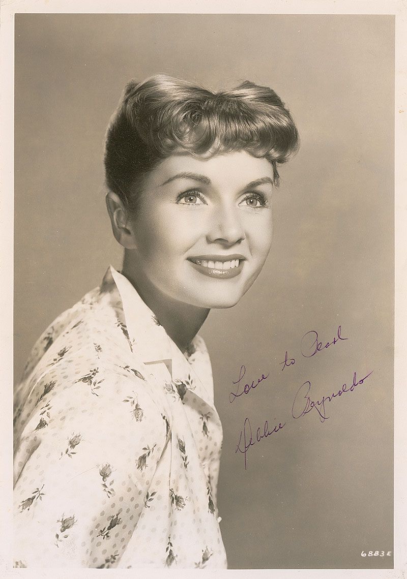Vintage matte-finish 7 x 10 photo of Reynolds from early in her career, signed and inscribed in purple ink, “Love to Pearl, Debbie Reynolds.” In fine condition, with some slight rippling to horizontal edges and mounting remnants to reverse.