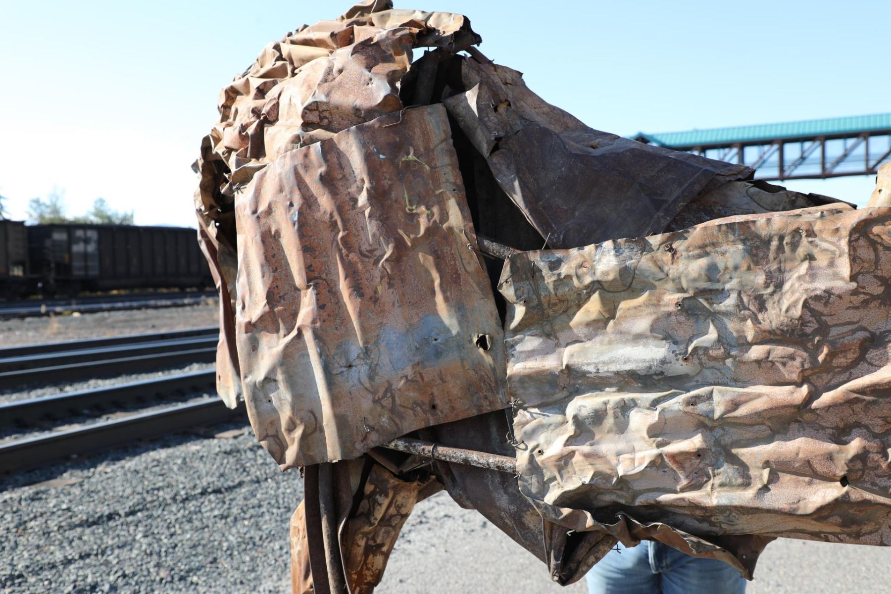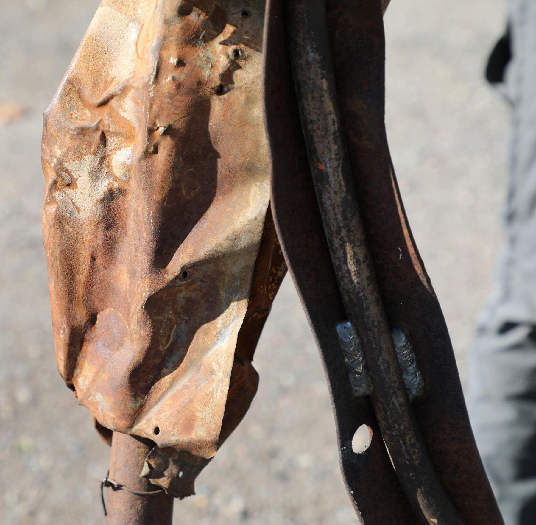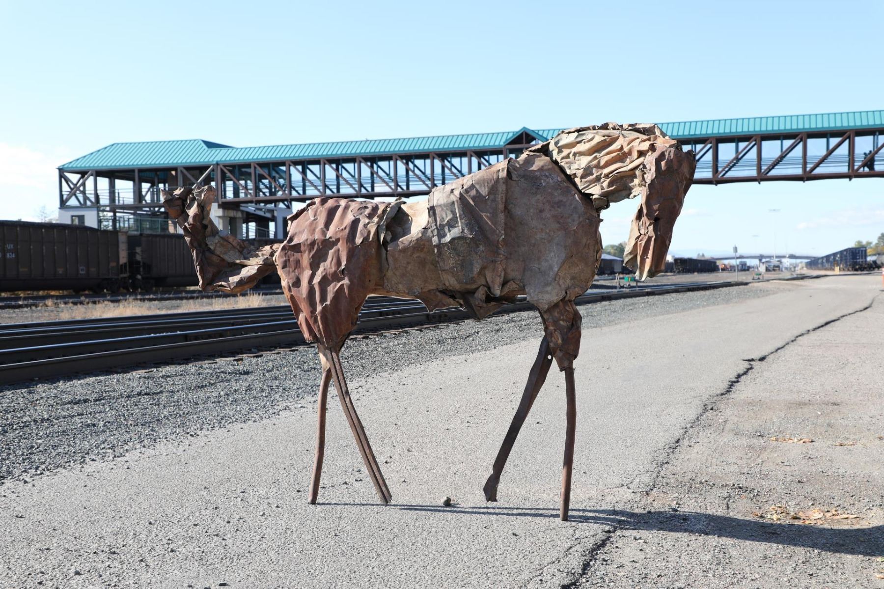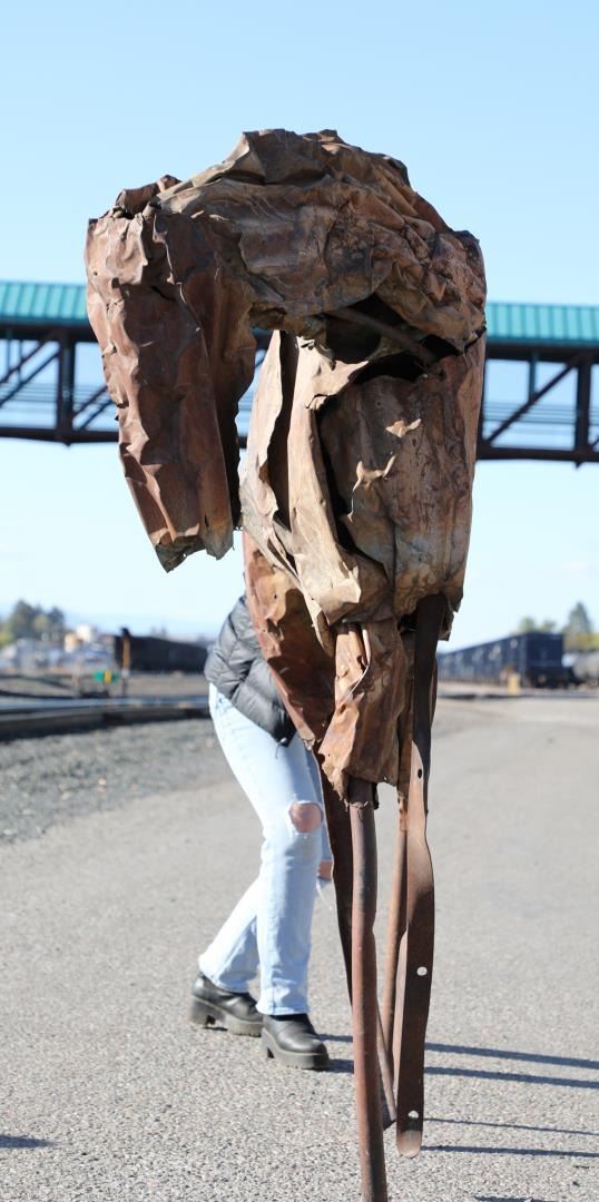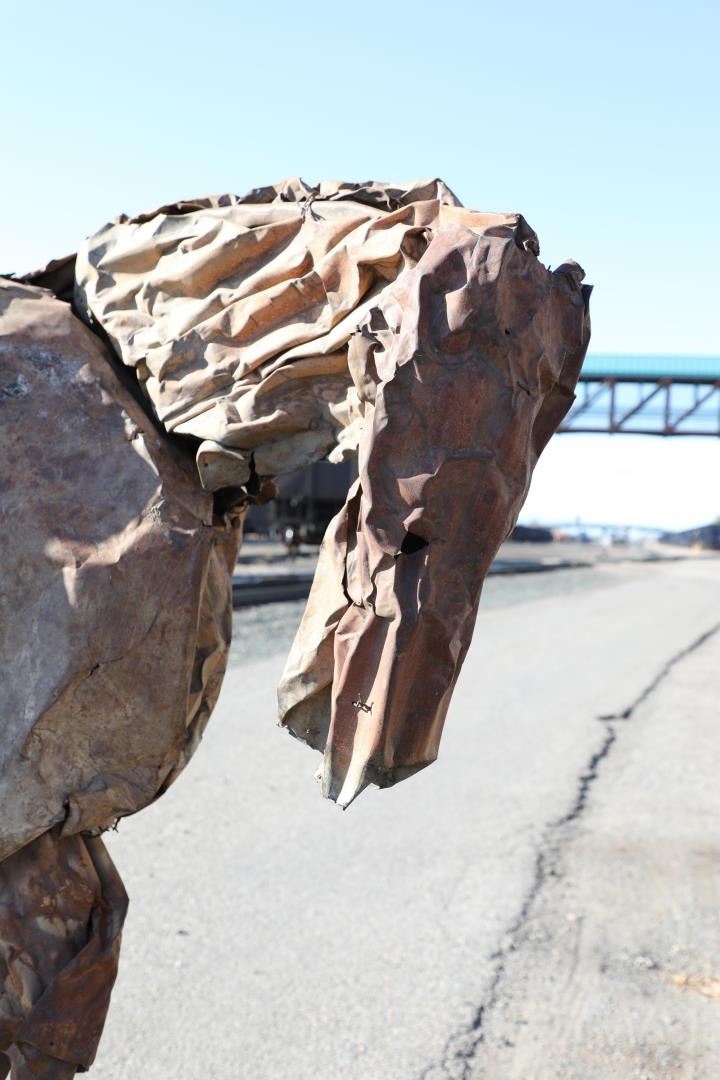 Title is Echo. 72" x 106" x 28". Steel. Provenance: Edward Thorp Gallery, 1989; From the Estate of Gary Fink. Published Reference: Michael Brenson, The New York Times, December 12, 1986 Deborah Kay Butterfield (Born 1949) is active/lives in Montana, California. Deborah Butterfield is known for Abstract mixed-media horse sculpture. Born in San Diego, California, on the day of the 75th running of the Kentucky Derby, Deborah Butterfield credits this event as determining her career as a modernist sculptor of horses. Her work is a combination of abstraction and reality. She uses found objects*, related to both horses and the discards of modern society, and applies these symbolic objects to armaments that are realistic shapes of horses' bodies. The overall effect is of a large, strong, loveable animal, gentle and calm, and it is obvious from the gentle personality conveyed by the objects that she has a strong affinity and understanding of her subjects. Butterfield received a Master of Fine Arts Degree from the University of California at Davis where she was a student of modernists William T Wiley, Robert Arneson, and Wayne Thiebaud. Her training in ceramics and sculpture increased her interest in crafts, but she decided to pursue the subject matter that was of most interest to her--horses. Her work has progressed through three stages. In the 1970s, she structured large, gentle mares that were highly realistic and were life-size plaster over steel armatures* and were finished with a combination of thin oil paint, ceramic glazes and shellac. She used muted blues and other colors, treating the horse romantically as though it were a canvas to be painted. In later works she took a more abstract approach, eliminating plaster and using mud mixed with straw, branches, and other fibers that had a direct connection to the earth. Sometimes she used paper mache and tar on the outside. In the 1980s and forward, she abandoned mud and used the junk of the twentieth century such as discarded barbed wire, metal pipes, wood fencing, rusting wire, corrugated metal, crushed steel, chicken wire, etc. She has taught art in several universities including the University of Wisconsin and the University of Montana and then settled her studio on her ranch in Bozeman, Montana, where she also raises horses.
