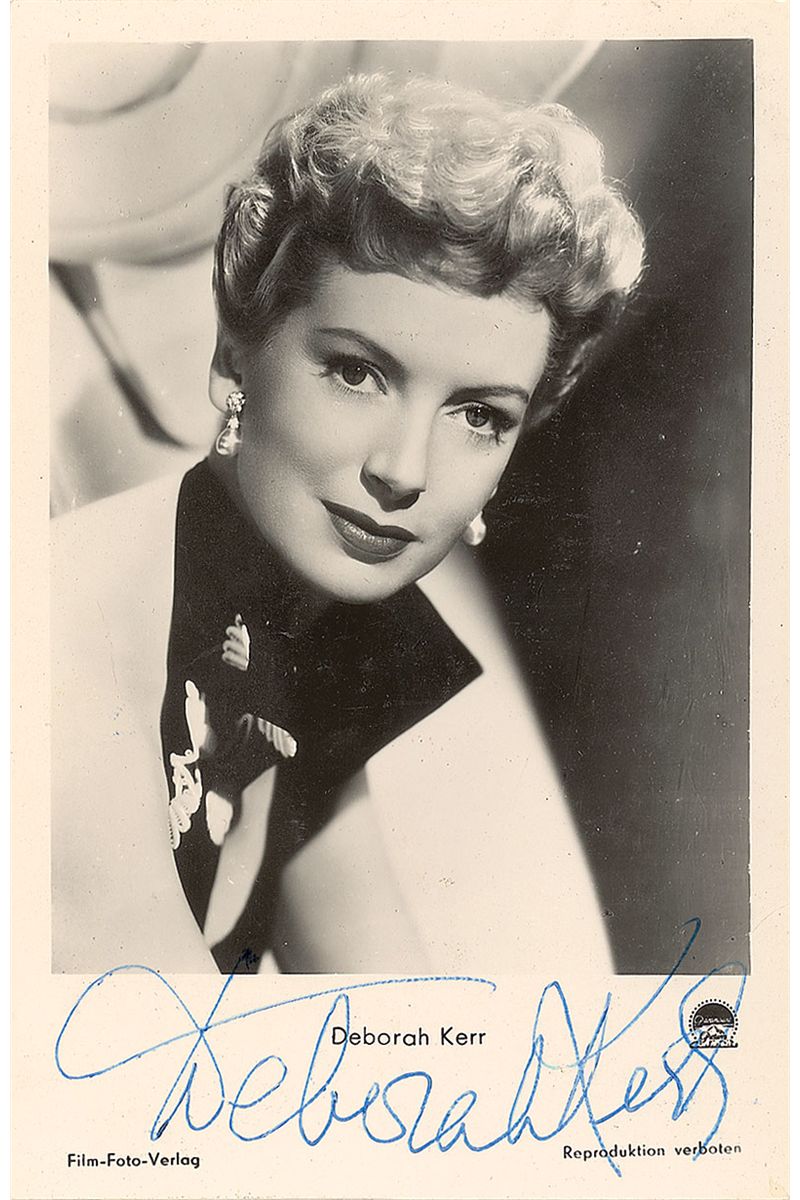 German 3.5 x 5.5 postcard photo, signed in the lower border in blue ballpoint. Scattered light surface marks, some slight skipping to signature, and mounting remnants to reverse, otherwise fine condition.