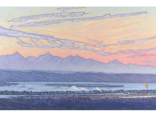 [Canadian ASA b. 1953] DUSK ON THE MACKENZIE Acrylic on canvas 24 x 30 ins. Signed & titled
