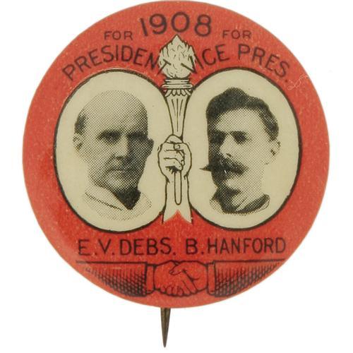 Debs & Hanford: 1908 1¼" Socialist Jugate.