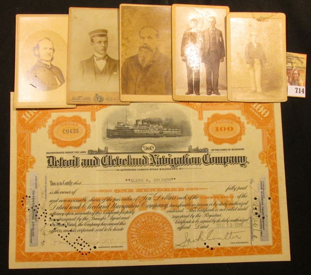 Dec. 13, 1939 100 Shares "Detroit and Cleveland Navigation Company…State of Michigan", upper central