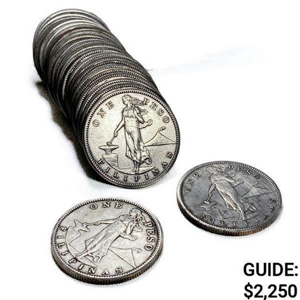 1909 US Philippines Silver Peso Roll (25 Coins)