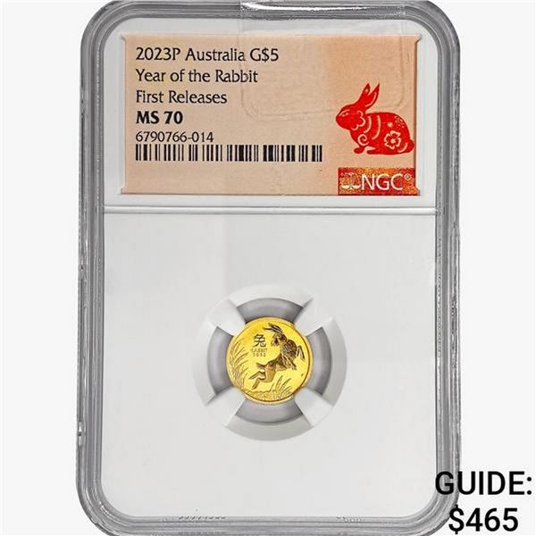 2023P $5 1/20oz. Gold Australia Rabbit NGC MS70