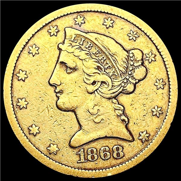 1868-S $5 Gold Half Eagle ABOUT UNCIRCULATED