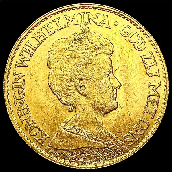 1917 Netherlands .1947oz Gold 10 Gulden CHOICE BU