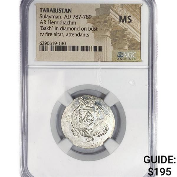 787-789 AD Tabaristan Silver Hemidrachm NGC MS