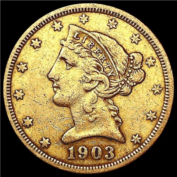 1903-S $5 Gold Half Eagle LIGHTLY CIRCULATED