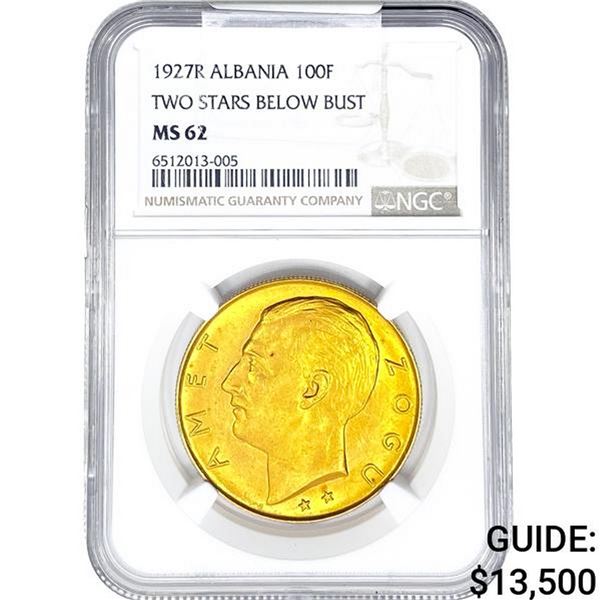 1927R Albania .9334oz Gold 100 Franga NGC MS61