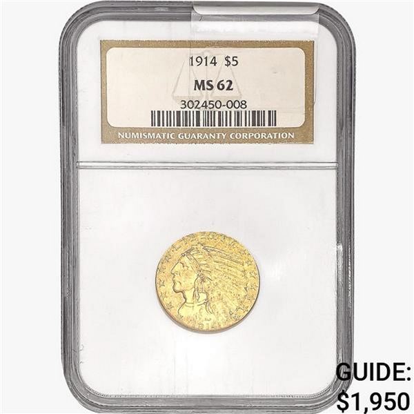 1912 $5 Gold Half Eagle PCGS MS62