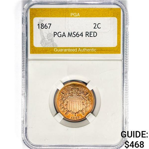 1867 Two Cent Piece PGA MS64 RED33885d - 1867 Two Cent Piece PGA MS64 RED