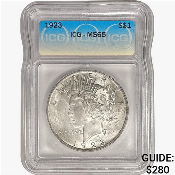 1923 Silver Peace Dollar ICG MS65