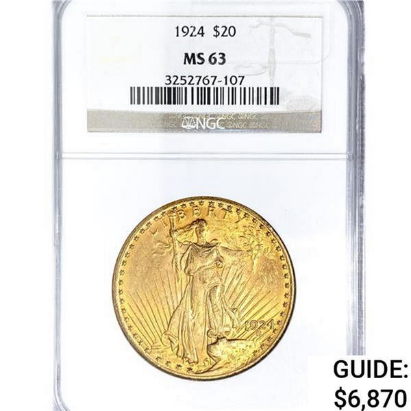 1924 $20 Gold Double Eagle NGC MS6334025a - 1924 $20 Gold Double Eagle NGC MS63