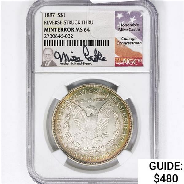1887 Morgan Silver Dollar NGC MS64 Struck Thru Cas34029a - 1887 Morgan Silver Dollar NGC MS64 Struck Thru Cas