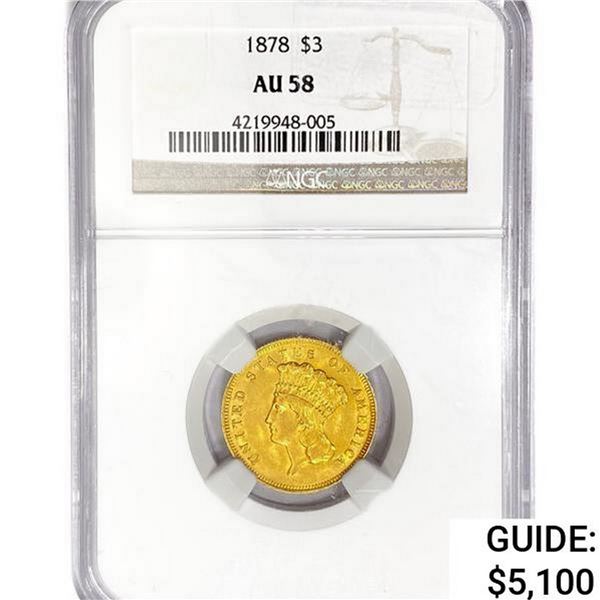 1878 $3 Gold Piece NGC AU5834049a - 1878 $3 Gold Piece NGC AU58