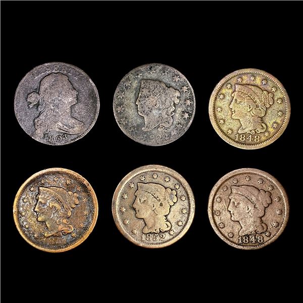 [6] US Large Cents (1803, 1822, (2) 1848, 1851, 18