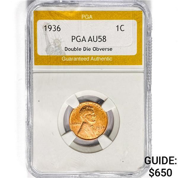 1936 Wheat Cent PGA AU58 DBL Die OBV