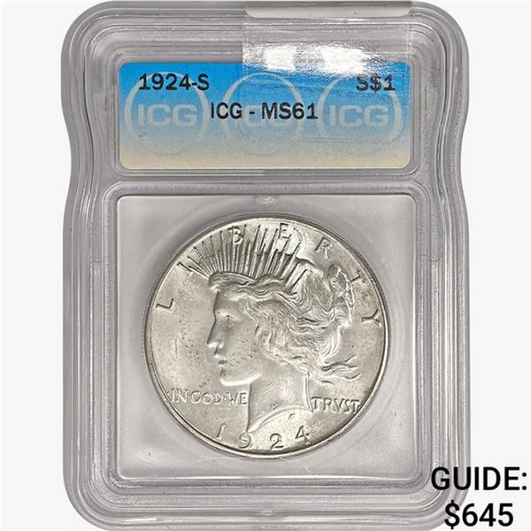 1924-S Silver Peace Dollar ICG MS61