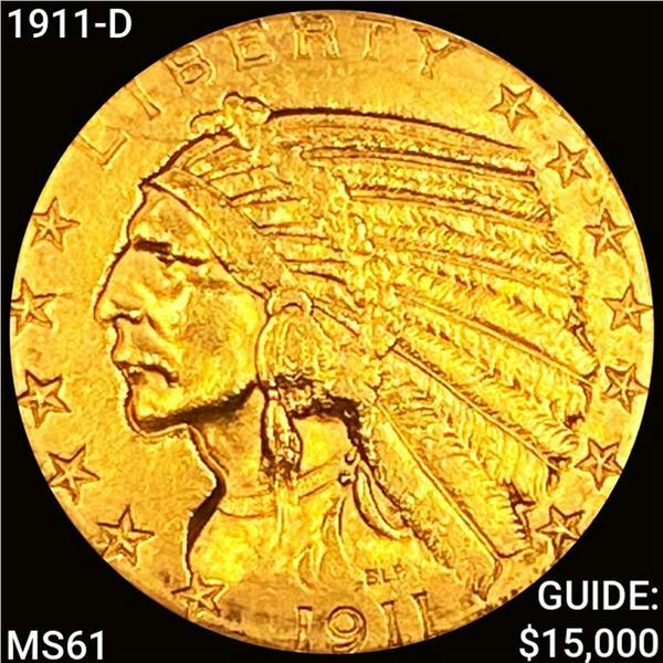 1911-D $5 Gold Half Eagle UNCIRCULATED