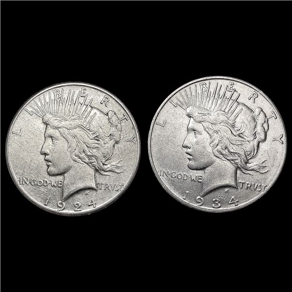 [2] Peace Silver Dollars [1924-S, 1934-S] CLOSELY