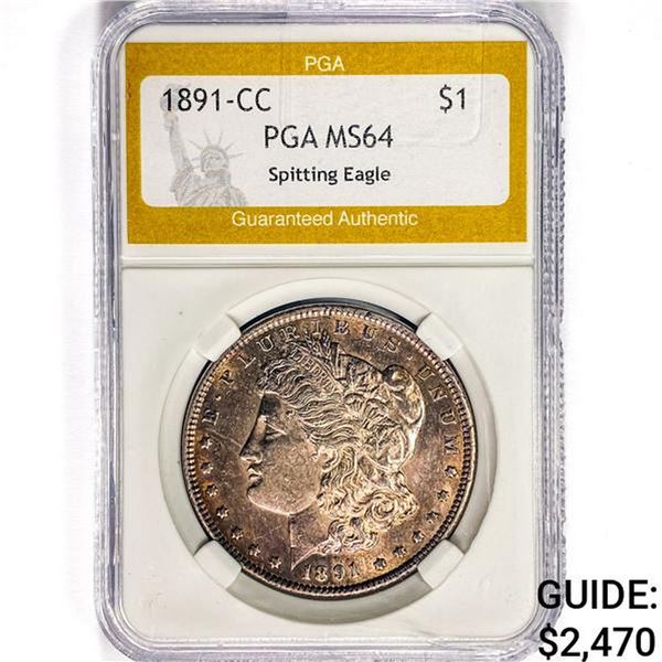 1891-CC Morgan Silver Dollar PGA MS64 Spit. Eagle