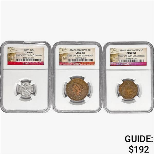 [3] 1842-1889 1 10C, 1 LC, 1 2C NGC Genuine