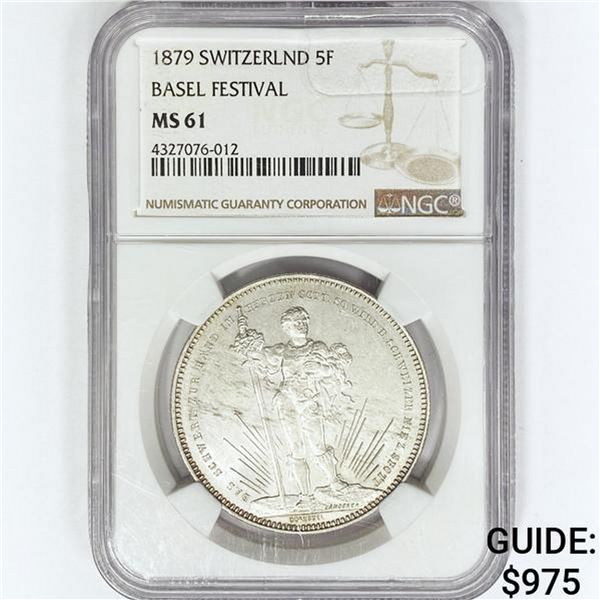 1879 5F .84oz silver SWITZERLAND NGC MS61