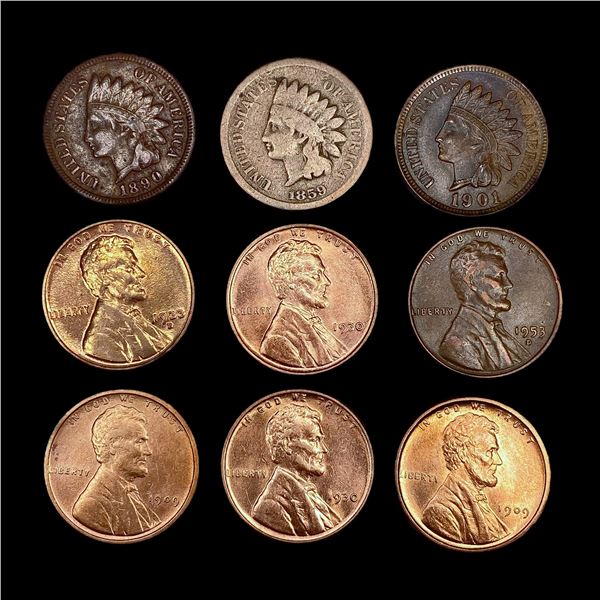 [9] Varied US Cents (1859, 1890, 1901, (2) 1909, (