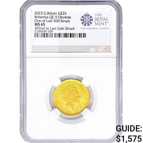 2023 G.B £25 1/4oz. Gold NGC MS65 QEII OBV 392nd