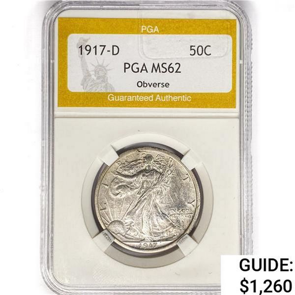 1917-D Walking Liberty Half Dollar PGA MS62 Obvers