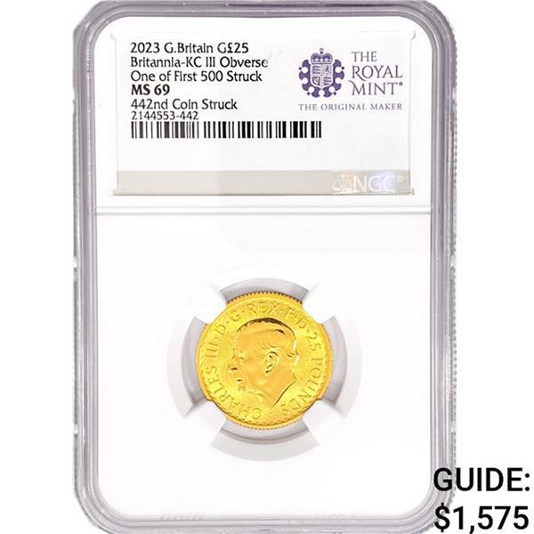 2023 G.B £25 1/4oz. Gold NGC MS69 KCIII OBV 442nd
