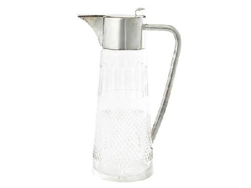 Blown and diamond cut tintless glass, silver-plated nickel-silver cover and handle. German, circa 1900 Size: 27 cm