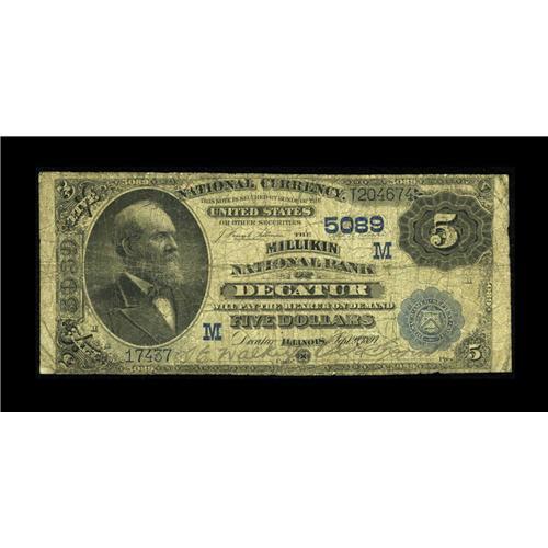<B>Decatur, IL</B></I> - $5 1882 Value Back Fr. 573a <B>The Millikin NB</B></I> Ch. # (M)5089<BR>Gengerke has recorded only two serial numbers for this Friedberg number. If you are working on a Friedberg number collection, you may want to get this number now, or remain without it for a very long time. <B>Very Good.</B></I><BR><BR><b>Shipping:</b> Coin/Currency (<a target="_blank" href="http://www.heritageauctions.com/common/shipping.php">view shipping information</a>)
