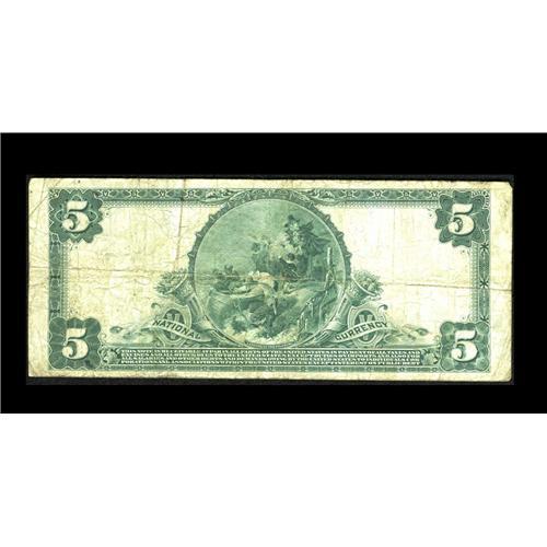 <B>Decatur, IL</B></I> - $5 1902 Plain Back Fr. 606 <B>The Millikin NB</B></I> Ch. # (M)5089<BR>Stamped signatures of S.E. Walker and O.B. Gorin are found on this evenly <B>Fine</B></I> note. This privately named bank did not lose its identity until 1991.