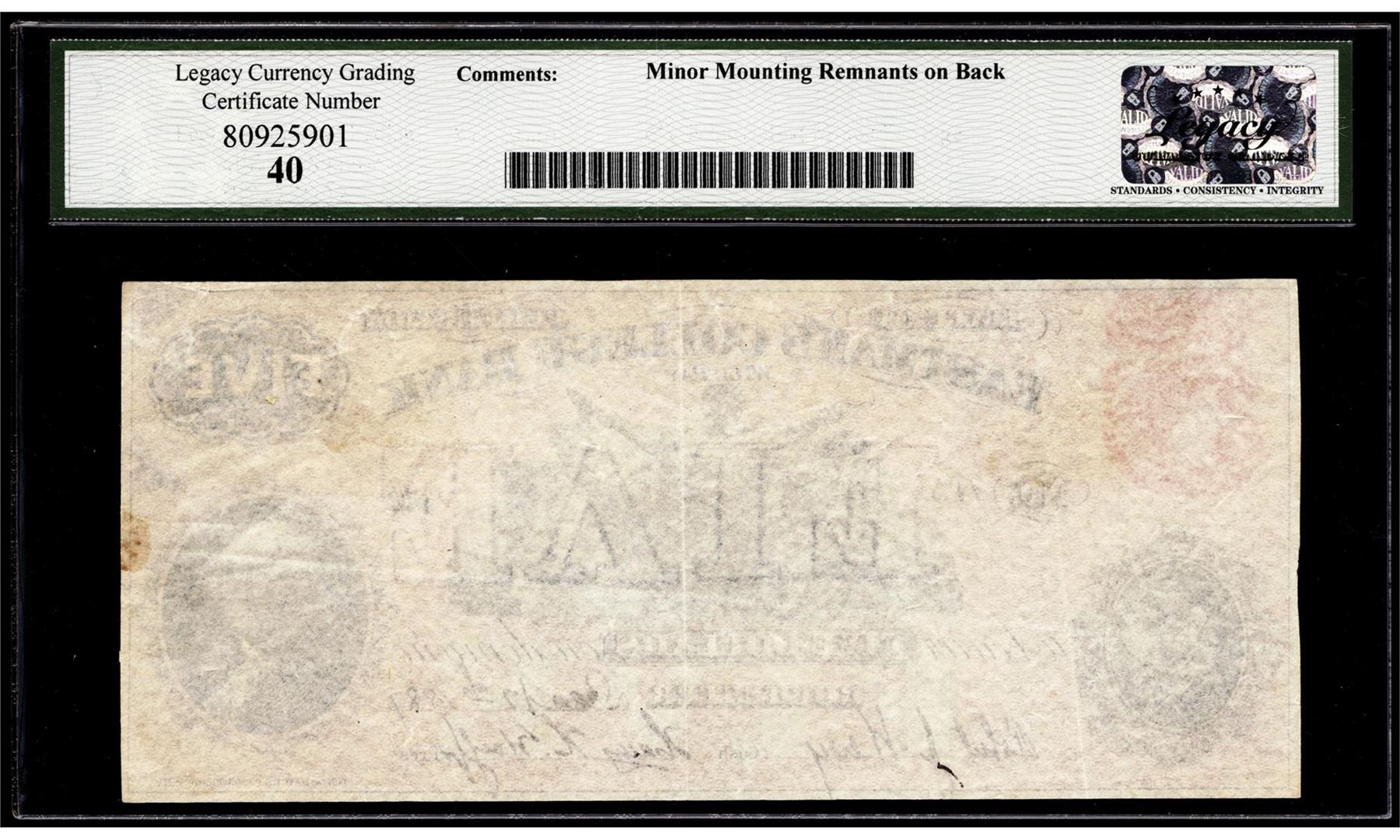 One December 12, 1887 $5 Eastman College Bank Rochester, NY Note Legacy Extremely Fine 40. Legacy Graded.