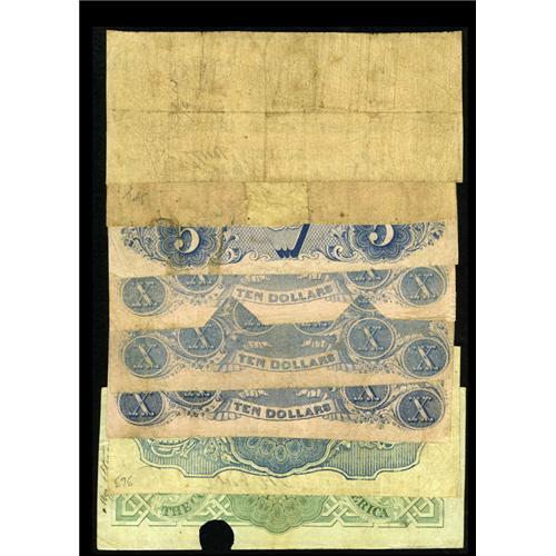 <B>December 2, 1862 Issues.</B></I><BR>T50 $50 <B>Fine+, HOC</B></I><BR>T51 $20<B>Fine</B></I><BR>T52 $10 (3) <B>Fine,</B></I> CC; VG, CC; VG, HOC<BR>T53 $5 <B>Fine,</B></I> CC</B></I><BR>T54 $2 <B>VG,</B></I> repair</B></I><BR>T55 $1 <B>VG.</B></I><BR><I>From The George P. Hammerly Collection</B></I><BR><BR><b>Shipping:</b> Coin/Currency (<a target="_blank" href="http://www.heritageauctions.com/common/shipping.php">view shipping information</a>)