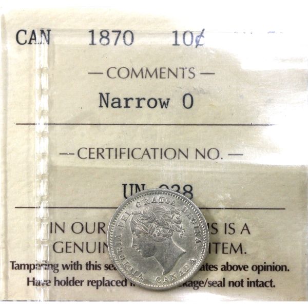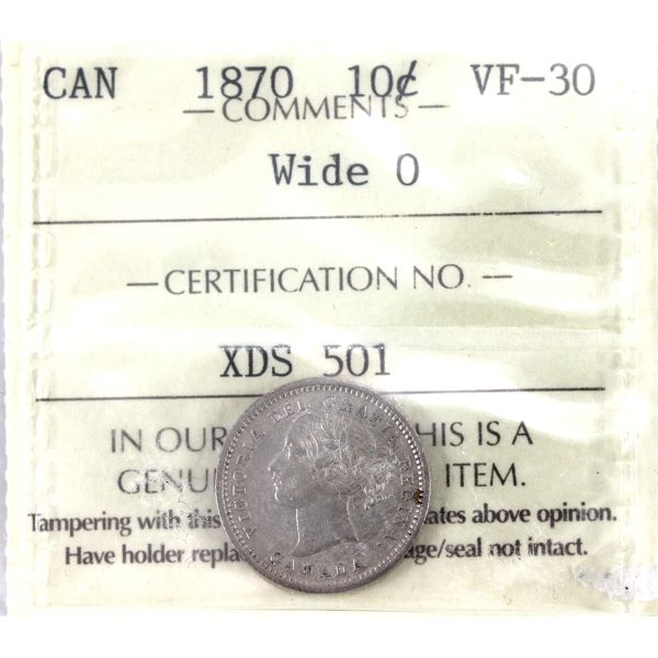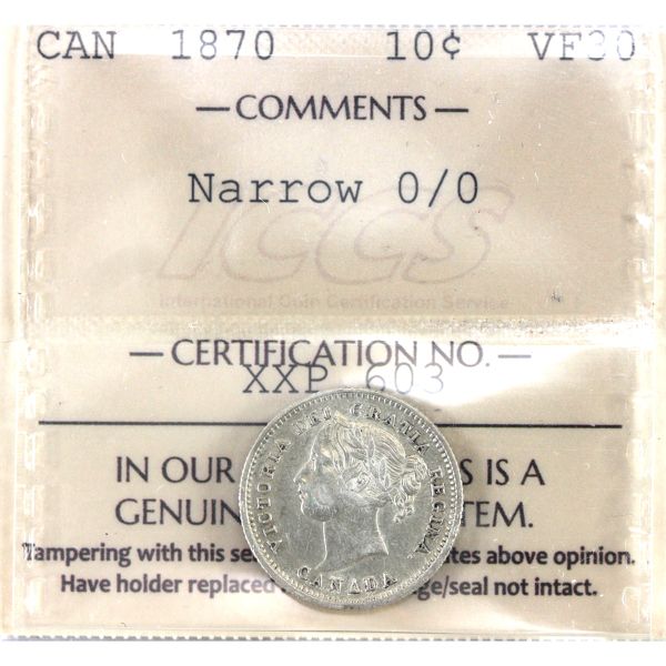 10-cent 1870 Narrow 0/0 ICCS VF30