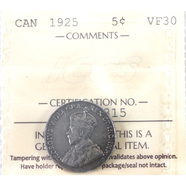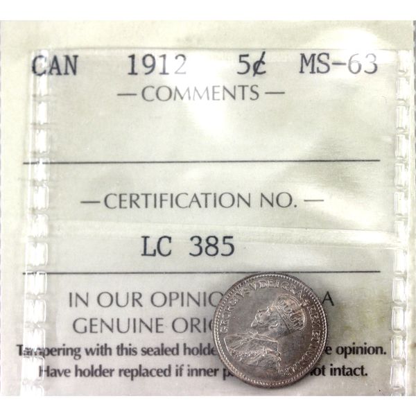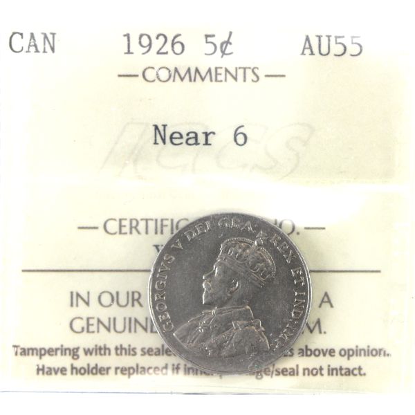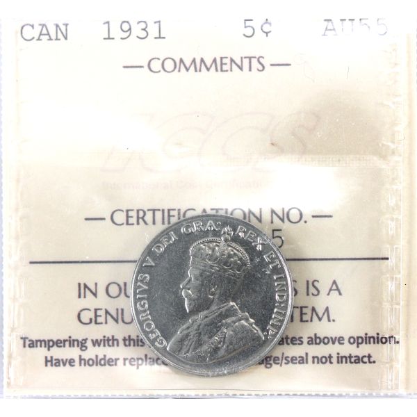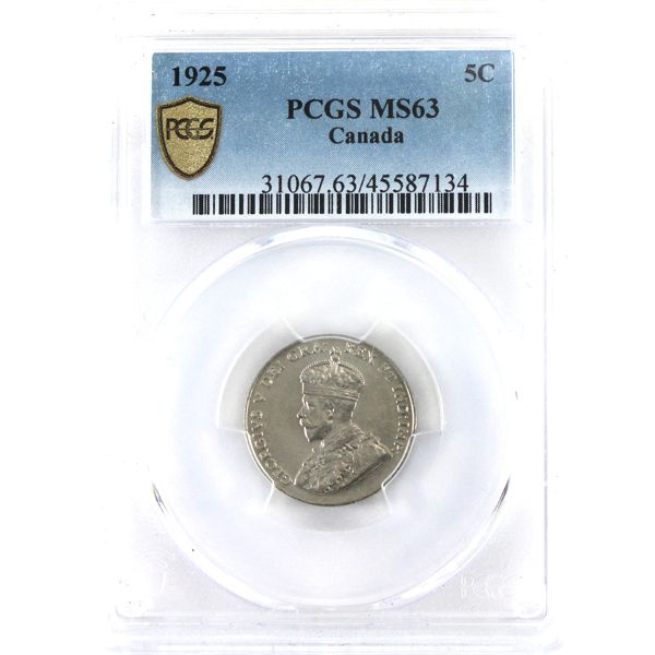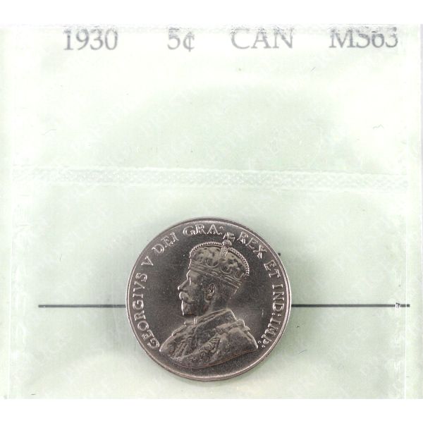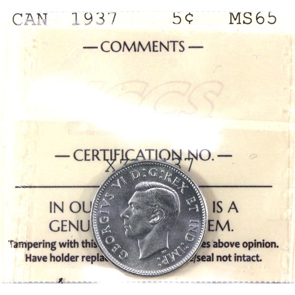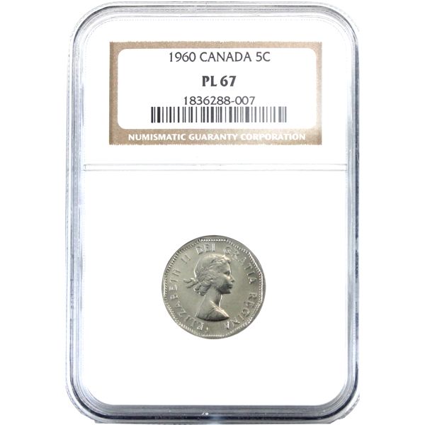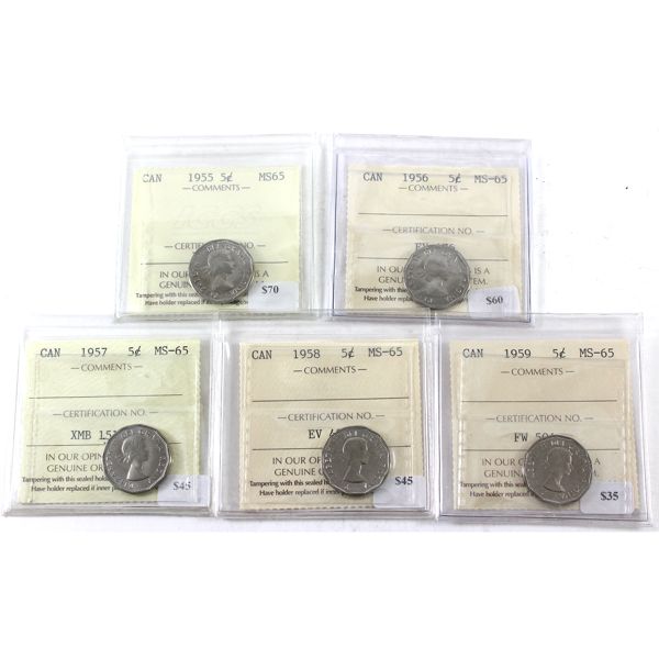 5-cent 1955, 1956, 1957, 1958, & 1959 ICCS MS65. 5pcs