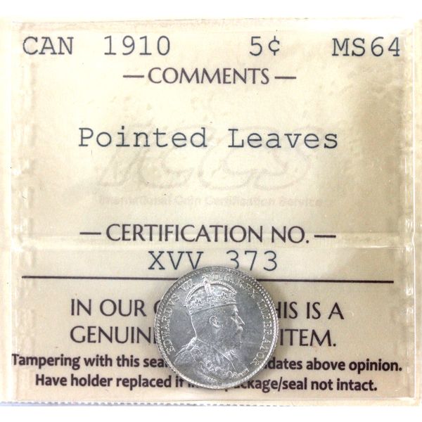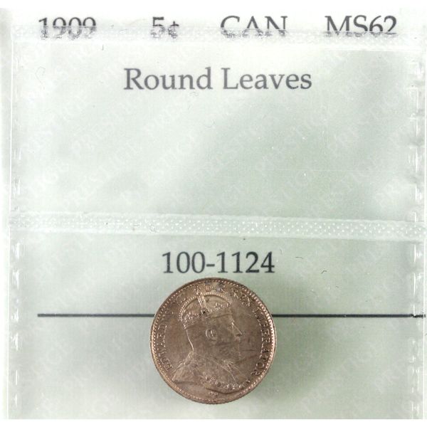 5-cent 1909 Round Leaves Prestige Certified MS62