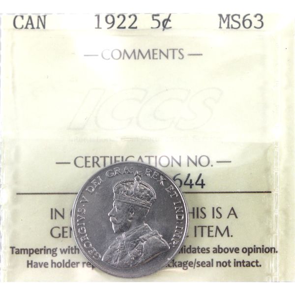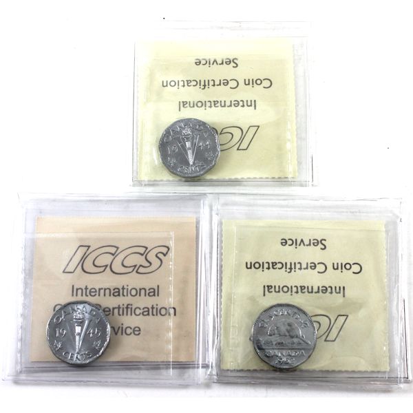 5-cent 1944, 1945, & 1952 ICCS MS65. 3pcs